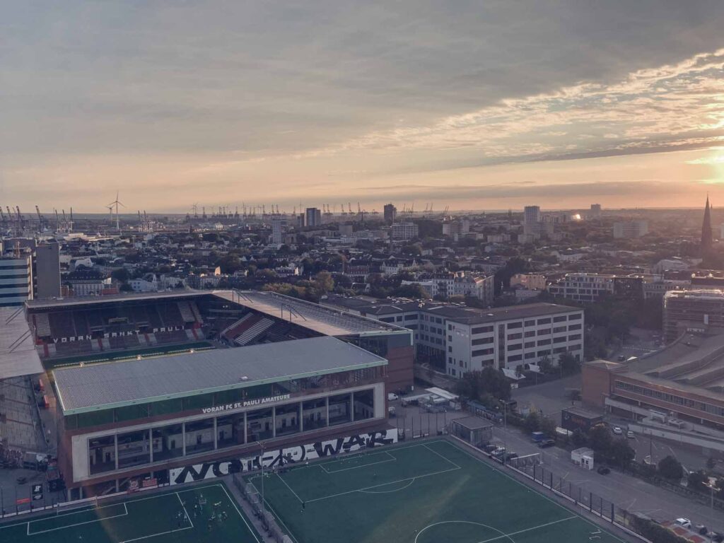 Es gibt auch einen Aufzug, um barrierefrei dorthin zu kommen. Es war ein herrlicher Herbsttag und Petra und ich genossen die fantastische Aussicht auf unsere Stadt. Bei einem Aperolspritz anschliessend im Strand-Pauli, liessen wir es uns in der untergehende Abendsonne gutgehen.