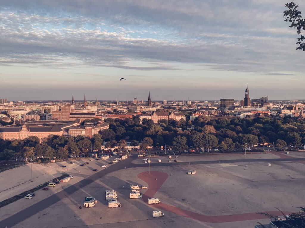Ein grauer Betonkoloss ragt aus dem Heiligengeistfeld, mitten im Herzen von St. Pauli. Eingebettet zwischen Millerntor-Stadion und Karoviertel ist der knapp 50 Meter hohe Bunker längst zum Wahrzeichen für das junge Hamburg geworden. Bekannt als „Medienbunker“, „Bunker an der Feldstraße“ oder seit Neuestem auch als „Grüner Bunker“ steht Hamburgs größter und einer der wenigen noch erhaltenen Hochbunker der Stadt für Kreativität, Stadtkultur. Der wohl bekannteste Bunker Hamburgs wurde einst zur Flugabwehr genutzt. Tausende Menschen suchten dort Schutz. Schon lange residieren in dem Bau Agenturen und Musikclubs. Nun hat er ein Hotel und ein begrüntes Dach, das öffentlich zugänglich ist.