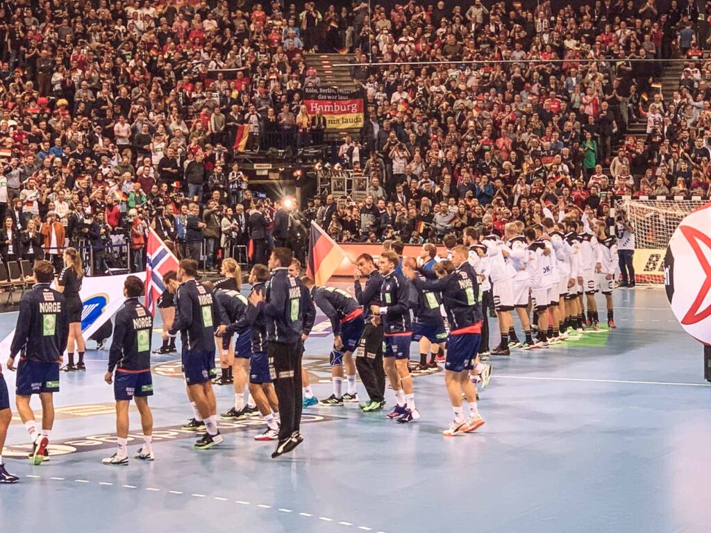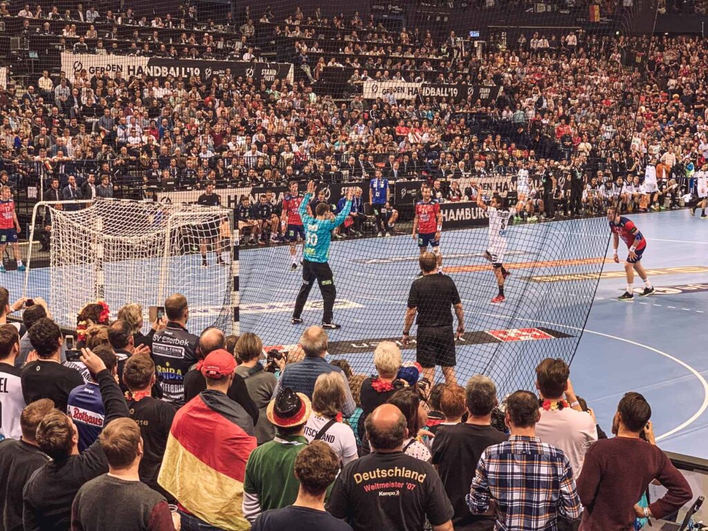 2019 fand die Handballweltmeisterschaft der Herren in Deutschland und Dänemark statt. Petra ergatterte für uns zwei Karten für die Halbfinalspiele in der Barclaycard-Arena Hamburg. Parkplatz direkt an der Arena, klasse Plätze in der 5. Reihe und vorher gab’s noch einen Drink in der Lounge. Beim ersten Halbfinale hatte Frankreich keine Chance gegen bärenstarke Dänen. Die Halle war natürlich ausverkauft und die Stimmung stieg beim Auftritt der deutschen Mannschaft gegen Norwegen im zweiten Spiel auf den Siedepunkt. Leider war Norwegen an diesem Abend eine Nummer zu groß und gewann.
