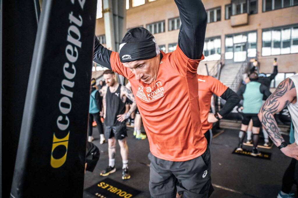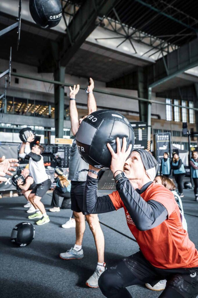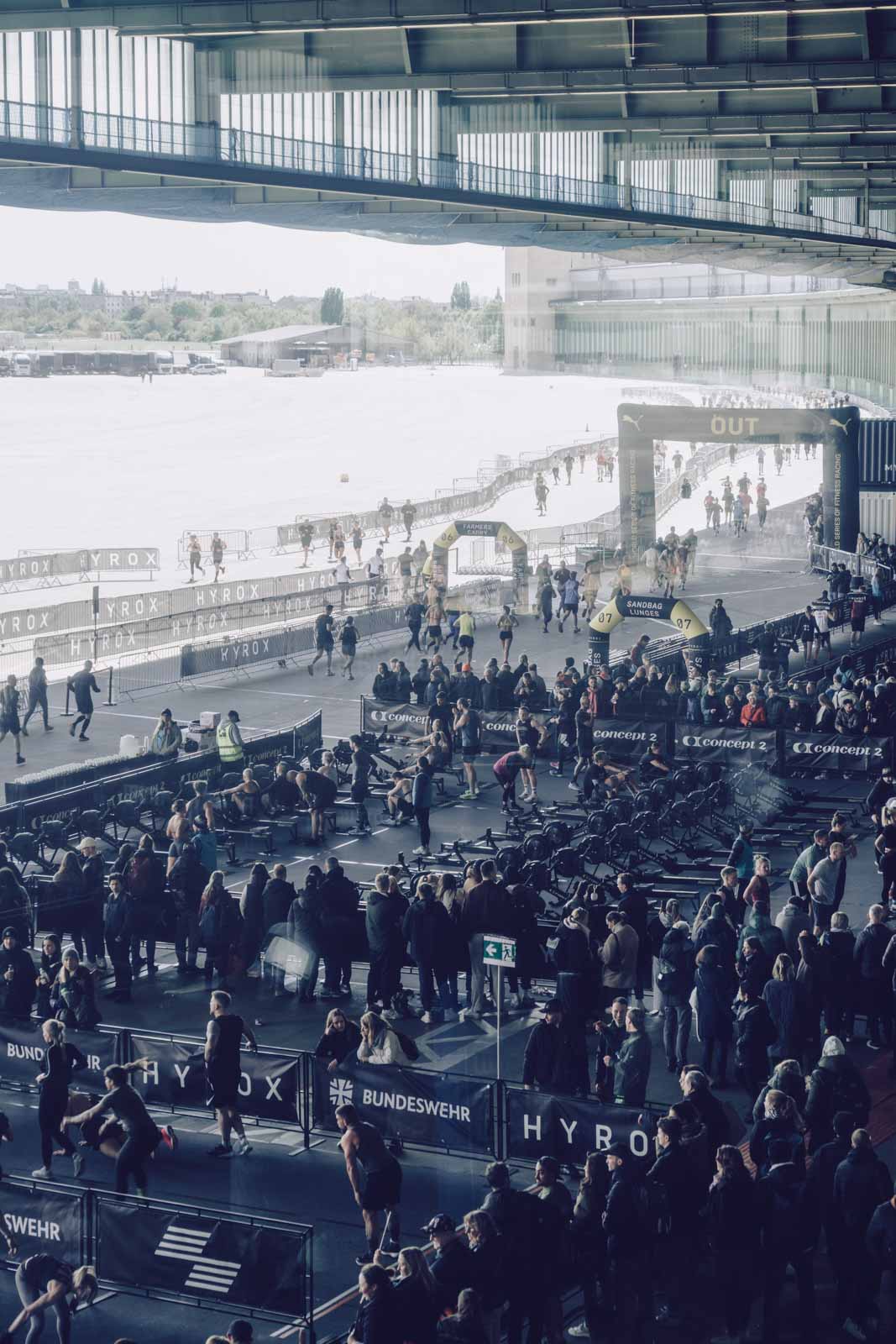 Nach unserem erfolgreichen Rennen und der WM-Qualifikation in Kopenhagen, traten Andi und ich 4 Wochen später in Berlin an. Es fand im geschichtsträchtigen Flughafen Tempelhof statt und soll ein „Signature Event“ von HYROX werden. Ich muss sagen, es war ein voller Erfolg für das HYROX-Team aber auch für Andi und mich. Es blieb trocken und die niedrigen Temperaturen spielten schon kurz nach dem Start keine Rolle. Eine unglaubliche intensive und beeindruckende Atmosphäre hing über dem Veranstaltungsort. Ausverkauft und mit vielen internationalen Athleten durchzogen war das Rennen irre motivierend.