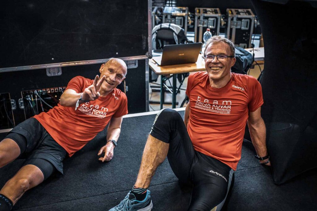 Nervös wie immer ging es an den Start. Bei Andi machte sich unglücklicherweise eine Erkältung bemerkbar und ein Abbruch stand im Raum. Aber wir kamen mega gut durchs Rennen und ich merkte kaum eine Schwäche bei ihm. Unsere Zeit 1:08:45 Std! Schon unglaublich wie Andi jegliche Widrigkeiten ausblenden kann.