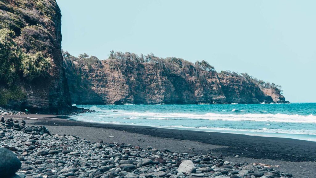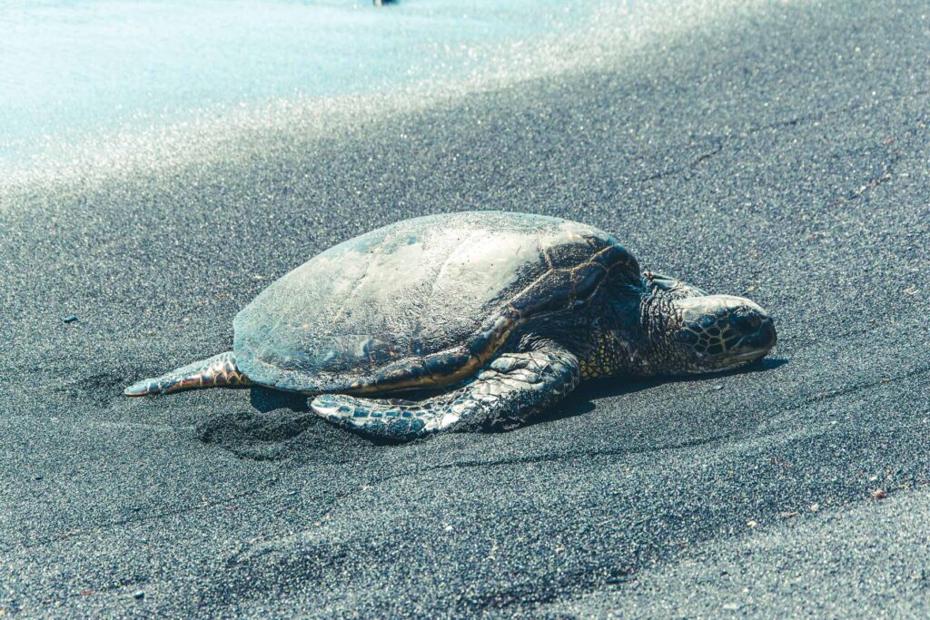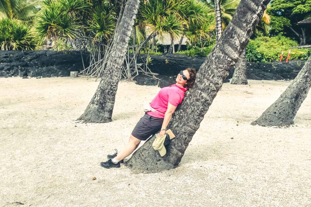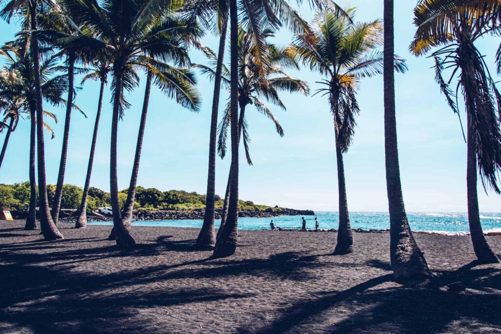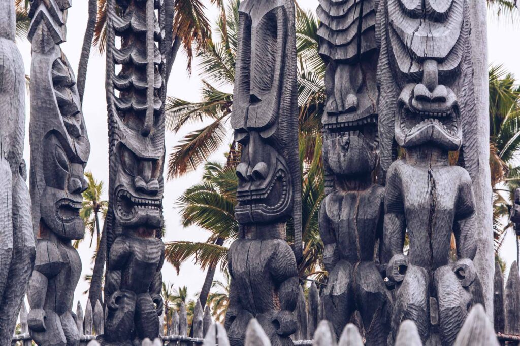 Ein weitere Punkt auf unsere Liste waren die Akaka-Falls, bevor wir unseren Standort nach Kailua-Kona an der Westküste verlegten. Unterwegs stoppten wir am „Punaluu Black Sand Beach“, einer der berühmtesten schwarzen Sandstrände Hawaiis. Eingebettet zwischen den Städten Pahala und Naalehu in der Kau-Region, bietet das pechschwarze Ufer einen tollen Anblick. Kokosnusspalmen säumen den oberen Rand des Sandstrandes und wir konnten auch einige grüne Meeresschildkröte dabei beobachten, wie sie sich am Strand in der Sonne aalten. Der nächste Halt war ein Ort von großer historischer Bedeutung für die Hawaiianer die althawaiianische Tempelanlage „Pu`uhonua o Honaunau“. Das 0,7 Quadratkilometer große Areal beinhaltet sowohl die restaurierten Überreste der Hofanlagen der hawaiianischen Könige also auch einen „puuhonua“, einen Zufluchtsort für Gesetzesbrecher.
