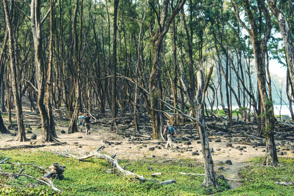 Big Island – Nach nur zwei Nächten auf Oahu flogen wir nach Hilo auf Big Island. Der „Lava Trees State Park“ befindet sich südöstlich von Pahoa. Bei einer Wanderung entlang des 1,1 km langen Rundwegs durch das 7 ha große State Monument kamen wir an außergewöhnlichen Abdrücken erstarrter Lavabäume vorbei. Im 18. Jahrhundert begrub ein Lavafluss das Gebiet unter sich und bedeckte die Stämme von Ohiabäumen mit Lava, die erstarrten und so für die Ewigkeit konserviert wurden. Eine längere Wanderung unternahmen wir dann noch an der Süd-Ostküste der Insel zwischen und auf Lavafeldern.