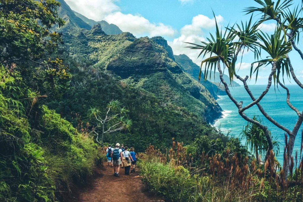 Kauai – Dies ist die älteste und am nördlichsten gelegene Insel Hawaiis und wird völlig zurecht auch die „Garteninsel“ genannt. Der erste Anlaufpunkt war das Naturschutzgebiet „Kilauea Point National Wildlife Refuge“ rund um den Kilauea Leuchtturm. In der grandiosen Steilküstenlandschaft der „Na Pali Küste“ wanderten wir auf dem Kalalau-Trail hoch über dem Meer mit fantastischen Ausblicken auf die wilde Küste und den Pazifik. Der Wailua River ist der einzige schiffbare Fluss Hawaiis. Wir machten zu fünft eine Kajaktour und versuchten einen versteckten Wasserfall mit Bademöglichkeit zu finden. Aber trotz der Wegbeschreibung des Kajakverleihers, ein aussichtsloses Abenteuer.