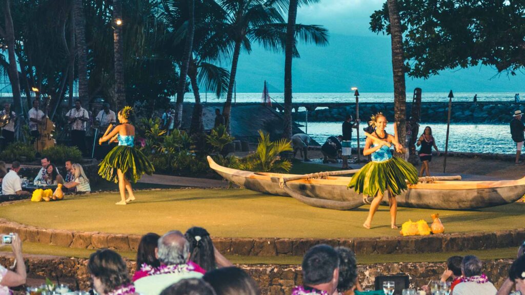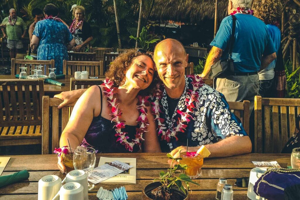 Am Abend vergnügten wir uns auf einem „Lahaina Luau“. Traditionelle hawaiianische Musik, unzählige Speisen und schmackhafte Getränke bei einem herrlichen Sonnenuntergang sorgten für einen gelungenen Abend. Die Hula Show ist das Herzstück der gesamten Veranstaltung. Jeder Tanz erzählt eine Geschichte, die die Entwicklung von Hawaii verkörpern sollte. Hier bekam ich auch endlich beim Betreten des Eingangs meinen hawaiianischen Blumen Lei um den Hals gelegt.