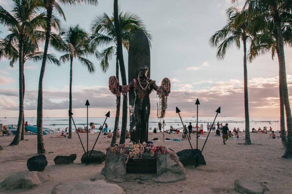 Oahu – Die Reisegruppe bestand aus 7 Teilnehmern, ein weiteres Paar, eine Dame und zwei alleinreisende Herren, sowie unsere Reiseführerin Birgitt. Man hatte sich schon auf den verschiedenen Flughäfen und Flügen gefunden und kennen gelernt. Aufgeteilt in zwei Autos machten wir am ersten Tag eine Inselrundfahrt auf der Ost-Seite Oahus. Der Diamond Head, von den Einheimischen Leahi genannt, ist ein Tuffsteinkrater, der mit seiner eckigen, charakteristischen Form Honolulu und Waikiki überragt. Das berühmte Wahrzeichen Oahus ist 231 Meter hoch und vom Kraterrand aus hat man einen der atemberaubendsten Blicke über Honolulu und den Süden Oahus – kein Wunder also, dass der Rundwanderweg der meist frequentierte auf der gesamten Insel ist. Auf dem Weg zum Kraterrand passierten wir Militärbunker und dunkle Tunnel aus der Zeit des I. und II. Weltkriegs bei dem etwa 40-minütigen Aufstieg. Am Nachmittag ging es endlich an den Strand. Der bekannteste Strande auf Hawaii ist mit ca. 3 Kilometer Länge, der Waikiki Beach. Leider wird der Strand mittlerweile von unzähligen Hotelketten und Shoppinggebäuden umrahmt und bietet so nicht mehr das, was man sich eigentlich unter einem Tag am Meer vorstellt.