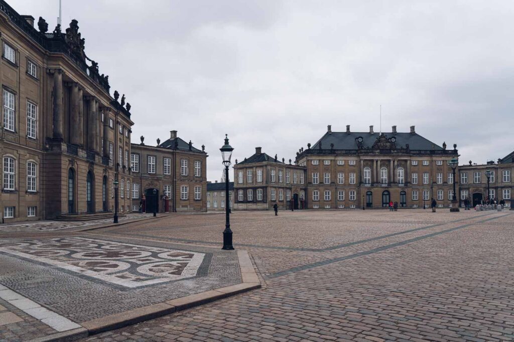 Weiter ging es zum Schloss Amalienborg, bestehend aus vier gleich aussehenden Rokokopalästen, die sich um den achteckigen „Amalienborg Plads“ gruppieren. Dort wohnt die Königsfamilie vor allem während der Wintermonate. Das Schloss selber kann nicht besichtigt werden. Interessant fand ich die königlichen Wachen mit ihren Bärenfellmützen.