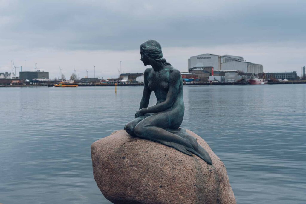 Am Langelinje-Kai an der Einfahrt zum Hafen von Kopenhagen befindet sich eine der größten Attraktionen Dänemarks, die witzigerweise auch eine der kleinsten ist: Die kleine Meerjungfrau. Die Skulptur besteht aus Bronze und Granitstein und ist inspiriert von Hans Christian Andersens Märchen über die Meerjungfrau, die alles opfert, um mit dem jungen, schönen Prinzen an Land vereint zu werden.