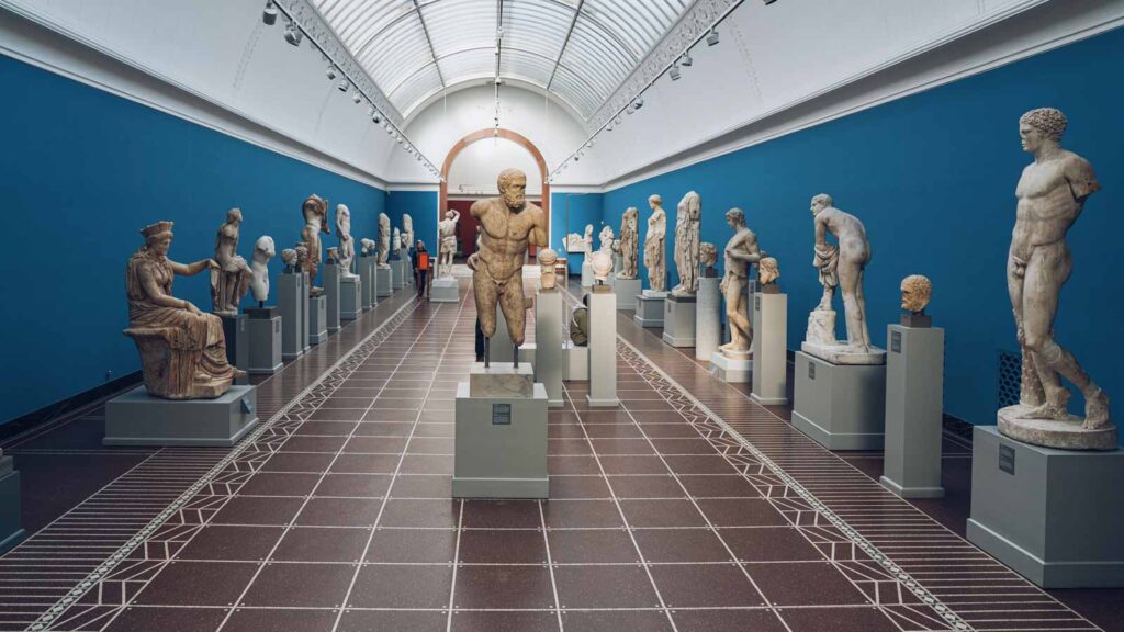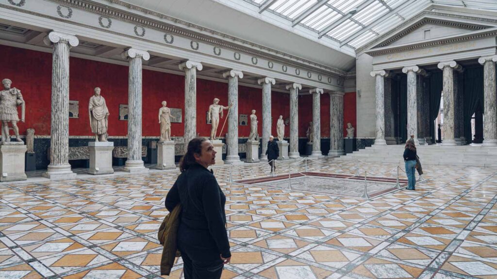 Zum Mittag trafen wir uns mit der Familie Kovar, die auch an HYROX teilnahmen. In einem kleinen, charmanten Bistro gab es eine kleine Stärkung bevor Petra und ich in die „Ny Carlsberg Glyptotek“ gingen. Das Kunstmuseum hat eine antike Sammlung mit ägyptischer, griechischer, etruskischer und römischer Kunst. Es sind überwiegend Skulpturen, die in Räumen gezeigt werden, die an antike Tempel erinnern und den Besucher durch 3.500 Jahre Kunst und Geschichte führen. Die moderne Sammlung konzentriert sich auf dänische Malerei und Skulpturen des 19. und 20. Jahrhunderts, sowie auf französische Kunst aus dieser Zeit. Das Museum besitzt über 40 Werke von Gauguin, 35 Skulpturen von Rodin, und eine komplette Reihe der Bronzen von Degas. Das Besondere an dem Museum ist seine Architektur. Das Gebäude wurde nach einem Entwurf der Architekten Vilhelm Dahlerup und Hack Kampmann errichtet und umringt unter seiner zentralen Kuppel einen Wintergarten mit Palmen.