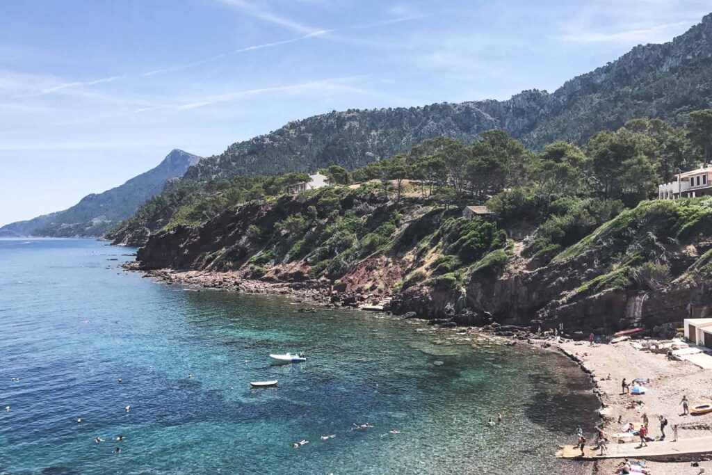 Erster Tag, erste Wanderung, es ging vom Hotel in Estellencs aus nach Banyalbufar, ein malerisches Bergdorf. Sein Name bedeutet “kleiner Weingarten am Meer”. Bis zum Einfall der Reblaus im 19. Jahrhundert war die Gegend um Banyalbufar eine der wichtigsten Weinanbauregionen auf Mallorca – ihre Winzer belieferten unter anderem das spanische Königshaus mit ihrem Malvasier. Die Terrassenfelder für den Weinbau wurden bereits in der Anfangszeit des Ortes angelegt und prägen sein Erscheinungsbild bis heute. Unterwegs kamen wir am Strand Port de Canonge und den gleichnamigen Ort vorbei und machten eine Kaffeepause. Der Strand liegt direkt vor dem Ort, ist jedoch weitgehend naturbelassen.