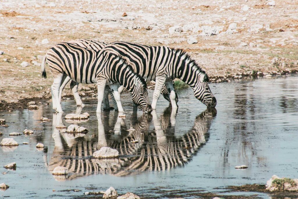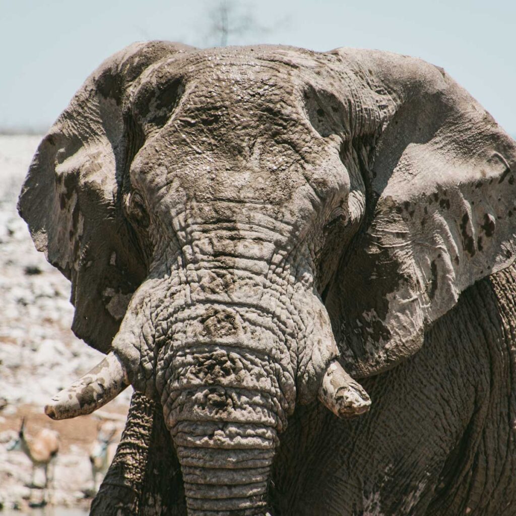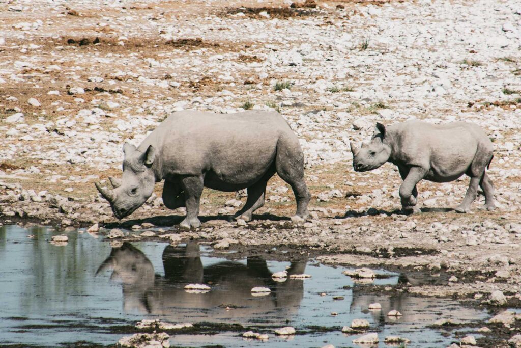 Etosha-Nationalpark – Die Reise führte ca. 500km weiter über Omaruru und Outjo bis zum Etosha-Nationalpark. Das Gondwana Etosha Safari Camp war für die nächsten zwei Tage unser Zuhause. Das Hauptmerkmal des Parks ist die 4760km² große Salzpfanne. Wir machten im Etosha-Nationalpark zwei Pirschfahrten auf denen wir besonders an den wenigen Wasserstellen die üppige Wildtierpopulation beobachten konnten. Oktober ist Trockenzeit und es war trocken, sehr trocken!