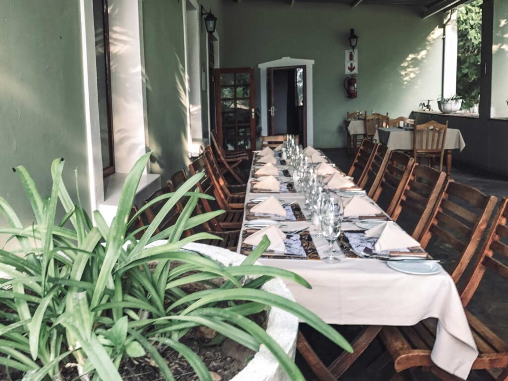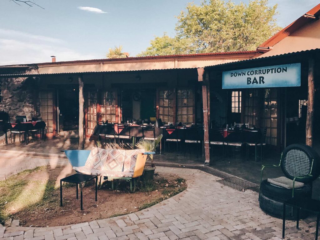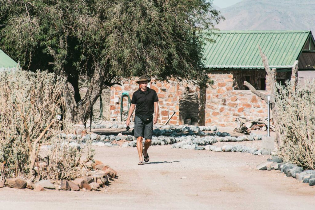 Der Reiseführer fuhr unseren Kleinbus die 360km hinterher und wir hatten Zeit für einen gemütlichen Kaffee und einen Rundgang. Man konnte viele Relikte aus der deutschen Kolonialzeit entdecken. Das Stadtbild des rund 44.000 Einwohnerinnen und Einwohner zählenden Ortes ist durch zahlreiche Kolonialbauten geprägt. Untergebracht waren wir im „Sea Breeze “ ein Gästehaus einer deutschen Auswandererfamilie.