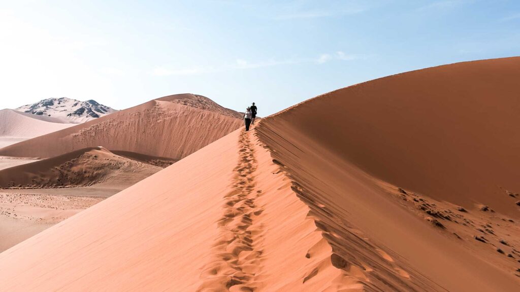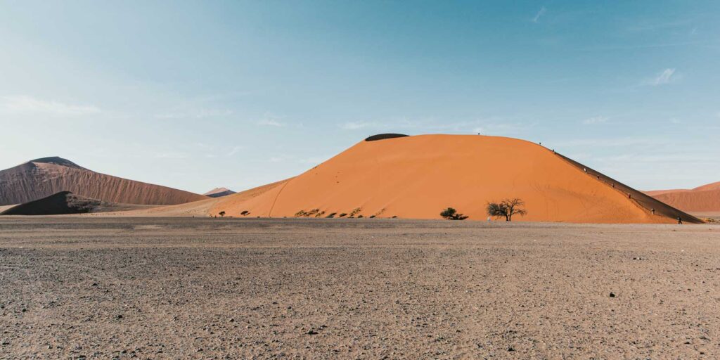 Windhoek – Namibias Hauptstadt ist ein Kulturmix aus kolonialgeschichtlicher und zeitgenössischer Lebensart. Stadtbesichtigung mit der Christuskirche als Wahrzeichen, dem Tintenpalast, Parlamentsgärten und dem Jugendstil-Glanzstück, der historische Bahnhof. Zum Abschluss zeigte uns ein einheimischen Guide noch einen Markt. Am nächsten Morgen packten wir unseren Kleinbus und Abfahrt, unsere erste Begegnung mit der endlosen Weite Namibias wartete.