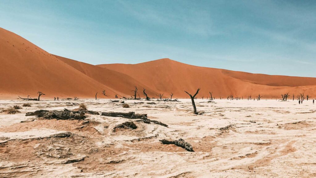 Soussusvlei – Für mich der Höhepunkt der Reise: Namib, die älteste Wüste der Welt. Ganz früh morgens vor Sonnenaufgang machte sich unsere Gruppe auf den Weg zu den gigantischen Dünen am Sossusvlei, die zum UNESCO-Weltnaturerbe gehören. Unterwegs zum Vlei genoßen wir die morgendliche Stimmung in diesen farbintensiven Dünentälern. Die letzten fünf Kilometer bis ins Vlei legten wir in einem Allradshuttle zurück, da normale Fahrzeuge es mit den Sandmassen nicht aufnehmen können. Wir stapften durch die zauberhafte Dünenwelt und erklommen einen der bis zu 350 Meter hohen Sandberge. Sobald ich durch das Dead Vlei mit seinen über 500 Jahre alten abgestorbenen Akazien wandelte, wußte ich, dass es seinen Namen zu Recht trägt. Bevor wir den Park verliessen, erkundeten wir zu Fuß den Sesriem-Canyon. Am heutigen Tag war mein 50. Geburtstag und als ich oben auf der Düne stand und in die Namib-Wüste schaute, wurde ich ein wenig wehmütig. In der Lodge für die Übernachtung gab es zu meiner Überraschung eine Geburtstagstorte.