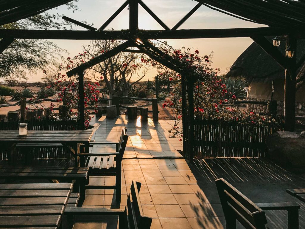 Otavi-Dreieck – Das Dreieck liegt zwischen den Ortschaften Otavi, Tsumeb und Grootfontein im Nordwesten des Landes. In der Region gibt es mit 450mm – 600 mm Regen im Jahr verhältnismäßig viel Niederschlag und vor allem auch sehr viele Quellen. Durch den für namibische Verhältnisse überdurchschnittlichen Niederschlag gibt es hier sehr gute Möglichkeiten zur kommerziellen Farmerei mit Getreide und Mais, weswegen das Otavi-Dreieck im Volksmund auch Maisdreieck genannt wird. Wir blieben eine Nacht auf einer Gästefarm.