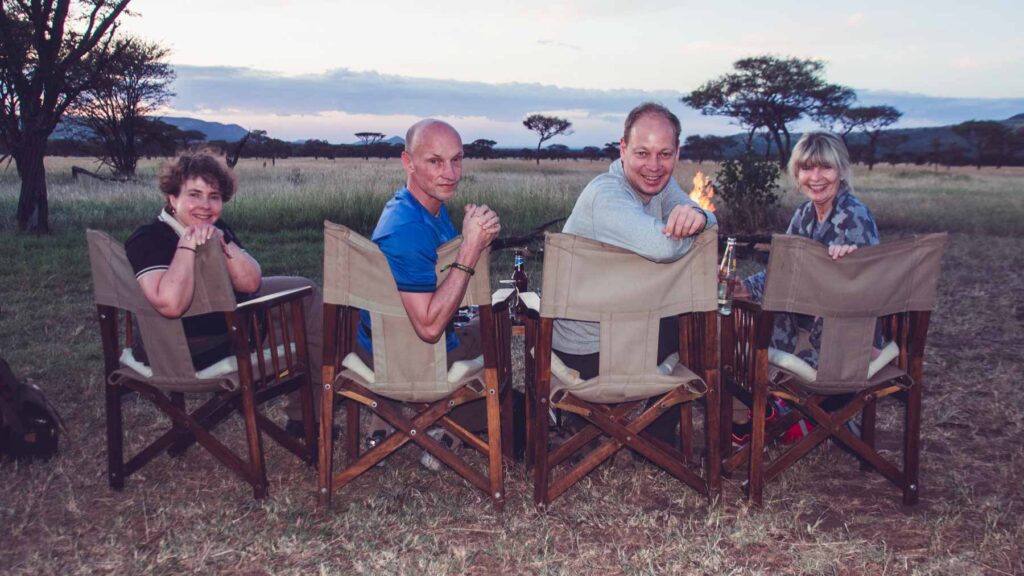 Die Fahrt zur Serengeti über die Ngorongoro Conservation Area war lang, aber mit der Sicht der ersten Tiere wurde es spannend. Nach ein paar Stunden Safari hatten wir genug und waren froh in unser Übernachtungslager, dem KatiKati-Camp anzukommen. Abendessen, ein Bier am Lagerfeuer und ab ins Zelt (Luxuszelte mit Bett und Dusche), wo man noch den Geräuschen und Lauten der Serengeti in der Nacht lauschte.