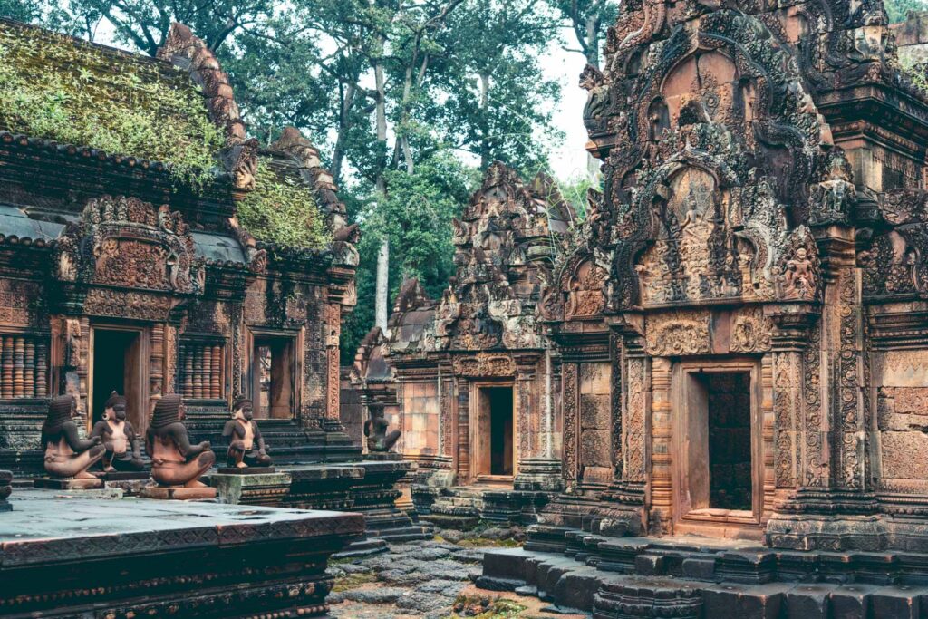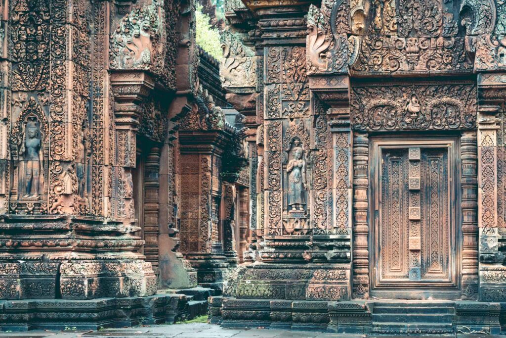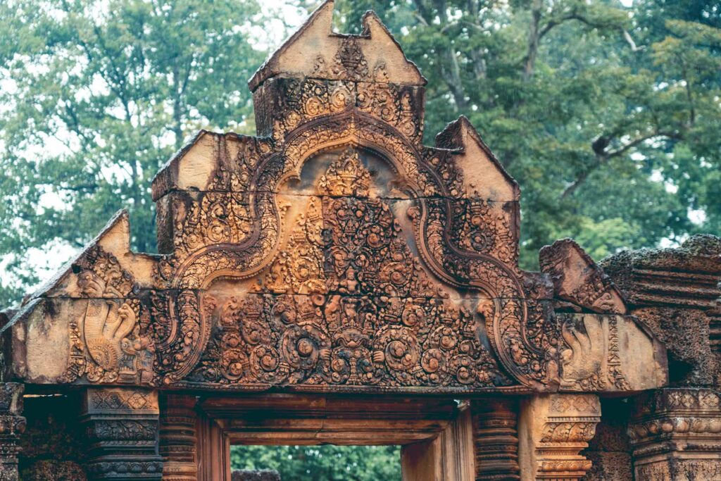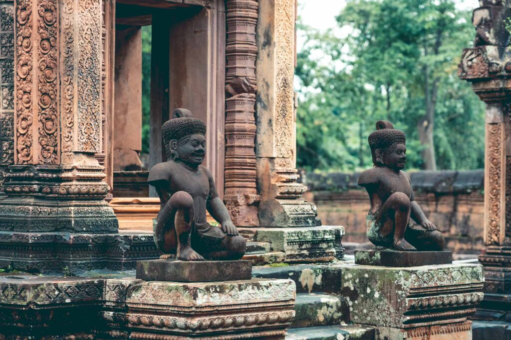 Die Tempelanlage Banteay Srei, nördlich des Hauptareals von Angkor gelegen, ist eine der beeindruckendsten und einzigartigsten Bauten der Welt. Der Tempel wurde in der zweite Hälfe des 10. Jahrhunderts zu Ehren Shivas von den Brahmanen Yajnavaraha und Vishnukumara errichtet. Ursprünglich unter dem Namen Tribhuvanamahesvara („Großer Gott der dreifaltigen Welt“) gebaut, bedeutet der heutige Name Banteay Srei in etwa so viele wie „Zitadelle der Frauen“ bzw. „Zitadelle der Schönheit“. Auch wenn der Tempel etwas kleiner wirkt als ähnliche Anlagen (die Gesamtausdehnung vom östlichen zum westlichen Torturm beträgt nur etwa 200 Meter), sind es vor allem die architektonische Konzeption und die gestalterische Liebe fürs Detail, die Banteay Srei zu etwas ganz Besonderem machen.