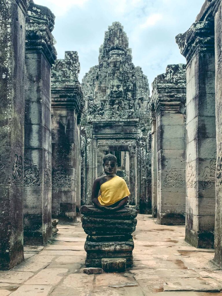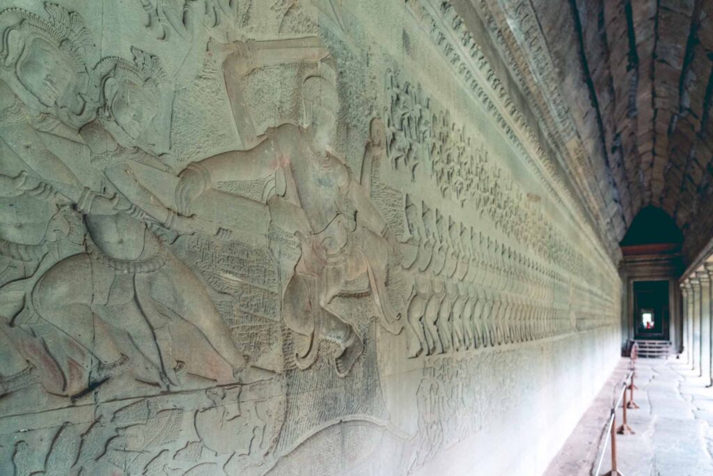 Angkor Wat – Das größte und wohl bekannteste sakrale Bauwerk der Welt zählt zum UNESCO-Weltkulturerbe. Wenn man das Heiligtum betritt, die Anlage in ihrer unglaublichen Größe durchschreitet und die Schönheit der Skulpturen und Flachreliefs sieht, kommt man aus dem Staunen nicht heraus. Der Haupttempel der im 12. Jahrhundert durch König Suryavarman erbaute wurde, gilt heute als Nationalsymbol des Landes. Er soll das räumliche Universum symbolisieren und beeindruckt allein durch seine immense Größe. Zudem ist er der besterhaltene Bau der Anlage und genießt bis heute noch religiöse Bedeutung. Der Gebäudekomplex kombiniert zwei grundlegende Typen der Khmerarchitektur: einen Tempelberg und einen Galerietempel. Sie repräsentieren den Mount Meru, das Zuhause der hinduistischen Götter. Auf der Außenseite des Tempels erstrecken sich auf über 800 Meter kunstvolle Flachreliefs.