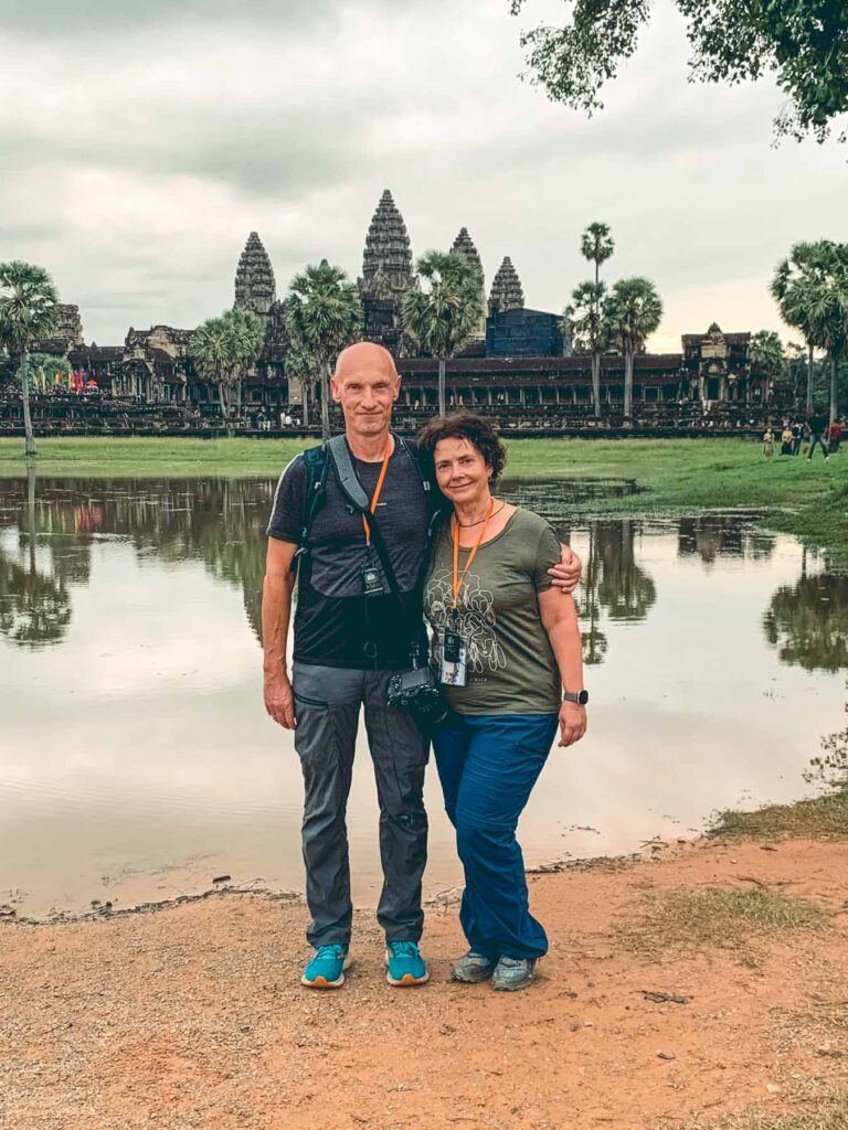 Am nächsten Morgen besuchten wir die Tempelanlage von Angkor Wat bei Sonnenaufgang. „Überraschenderweise“ waren wir nicht alleine und die vielen Touristen störten schon etwas die idyllische Atmosphäre frühmorgens.