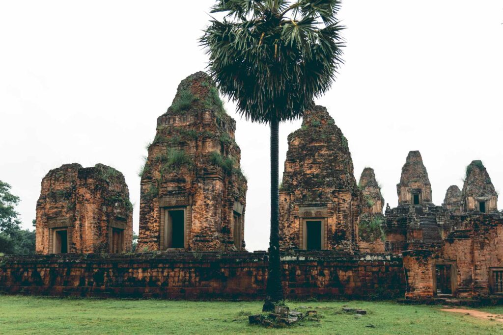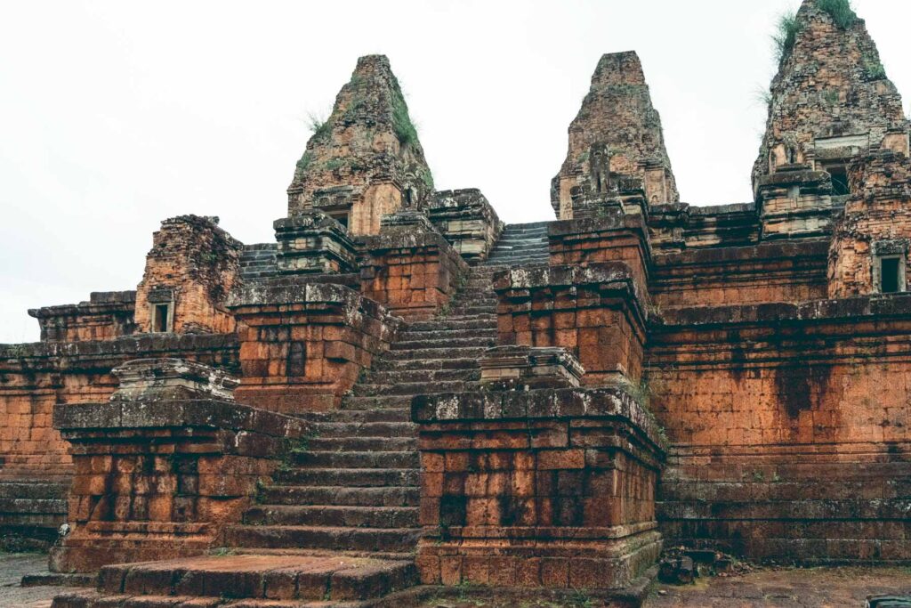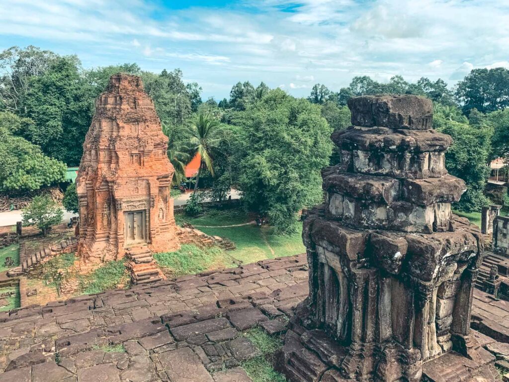 Der letzte Tempel des Tages war Pre Rup, der unter der Herrschaft von König Rajendravarman II im Jahr 961 errichtet wurde. Er gilt als bedeutendste Angkor-Tempel des 10. Jahrhunderts und zählt zu den beeindruckendsten Bauwerken der ganzen Region. Bei Pre Rup handelt es sich um einen hinduistischen Tempel, der der Gottheit Shiva geweiht wurde. Das Bauwerk an sich wurde aus Sandstein, Vulkanstein und Laterit erbaut, was zur Folge hatte, dass die Reliefs durch die Witterung zu einem großen Teil abgeschliffen wurden und heute nicht mehr bzw. kaum mehr nachvollziehbar sind. Die vier Seiten des Pyramidenbaus sind genau anhand der vier Himmelsrichtungen ausgerichtet. Der Baustil ist eine Anlehnung an den Berg Meru, den Weltenberg, der im Zentrum des Universums der hinduistischen, buddhistischen und jainistischen Mythologie steht und über fünf Gipfel verfügt: So finden sich auch hier fünf Tempeltürme (Prasat), die diese symbolisieren sollen.